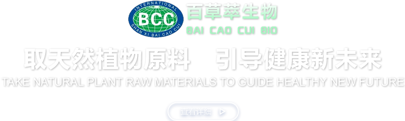 陜西百草萃生物科技有限公司,位于陜西省咸陽市秦都區濱河西路1號大秦御港城,公司成立于1996年,主要從事天然植物種植、研發(fā)、生產、加工、銷售為一體的高科技企業(yè)。主營醫(yī)藥原料、保健品原料、化妝品原料,精細化工原料。公司致力于人類健康保護事業(yè)“ 以科技為動力,以質量求生存” 的本質,依托陜西高新科技技術人才和科研優(yōu)勢,已形成多學科、全方位、高層次的技術管理精英團隊。充分利用秦巴山區的天然藥物資源,歷經多年發(fā)展為打造百草萃生物品牌奠定了基礎。